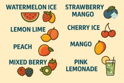 | 9 | Mixed Berry + Cherry Lemon + Strawberry Kiwi + Strawberry Watermelon Bubblegum |